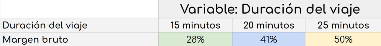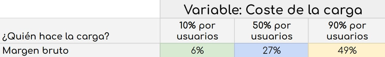 Analizando las diferentes variables por separado para dar con las palancas y oportunidades de crecimiento encontramos la siguiente influencia de cada una de ellas en el margen bruto del unit economic: