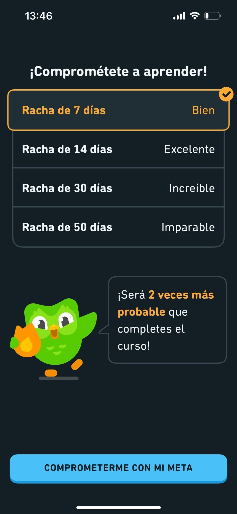Implementar una funcionalidad que mostrara los días de racha que llevaba el usuario resultó ser clave y la mecánica que más repercutió al engagement de Duolingo. Esto se hizo evidente sobretodo en los usuarios que pasaban más de 10 días, ya que contra más grande es la racha, más dolor genera para el usuario perderla.