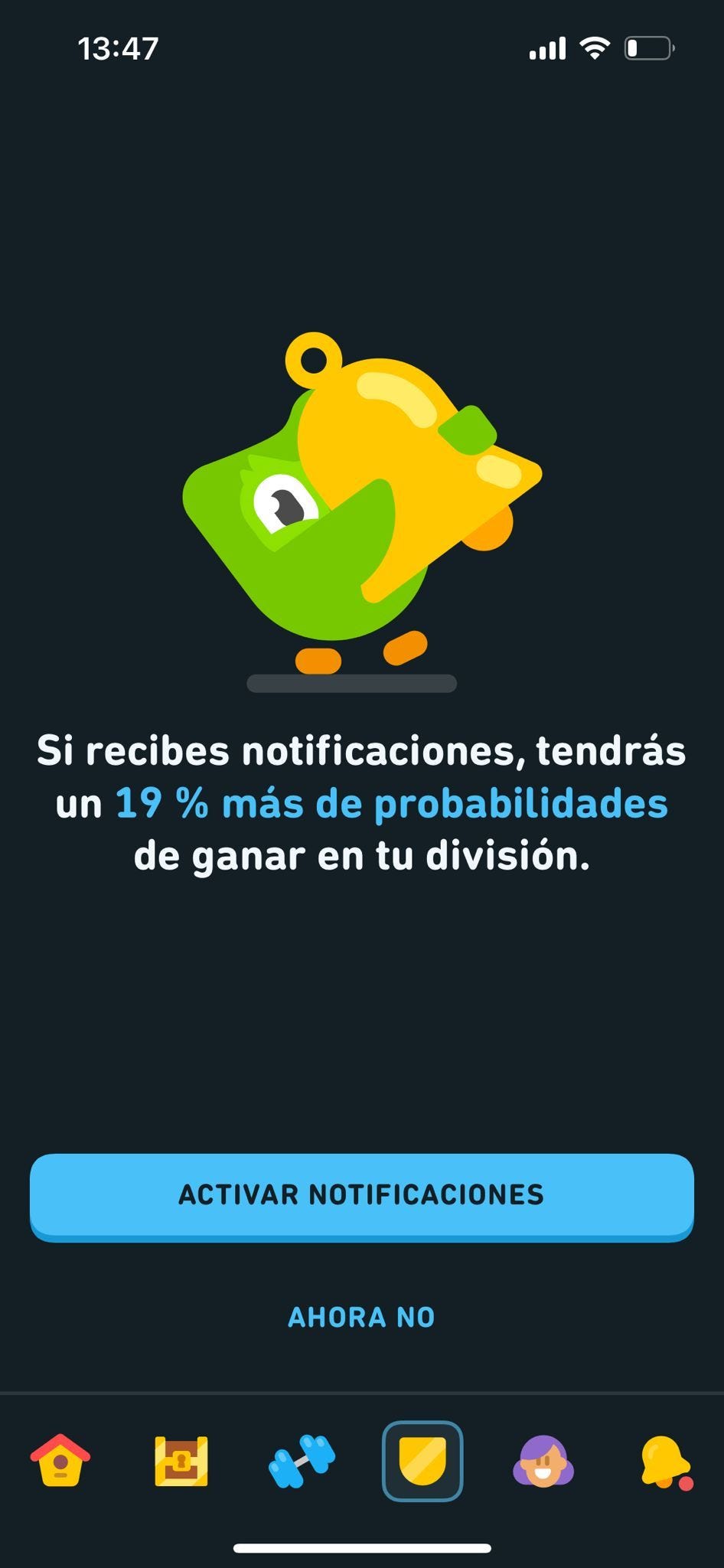 Se realizaron varios A/B tests hasta que se dieron con los copys, horarios, imágenes y ubicación idónea para estas notificaciones. Ejemplo de ello fue la notificación al final de la noche indicando que la racha acumulada estaba en peligro, funcionalidad que justamente resultó ser la más potente de las 3.