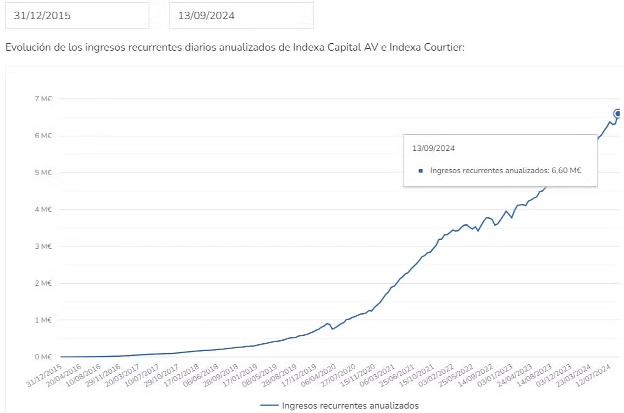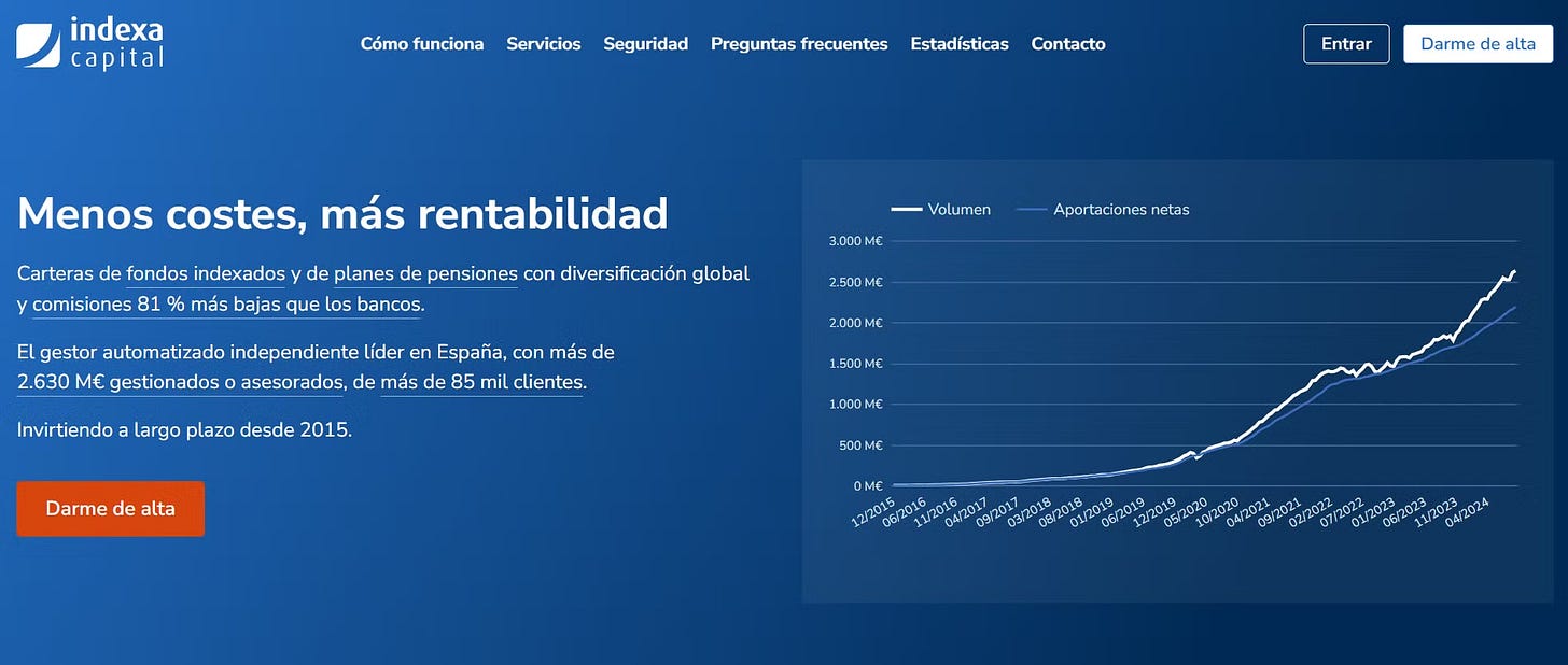 Quitando lo anterior, no hay otra fuente de ingresos para Indexa, ni comisión por % de ganancias ni otros (ya que consideran que no es mérito suyo las ganancias de su cliente y sí de mercado).