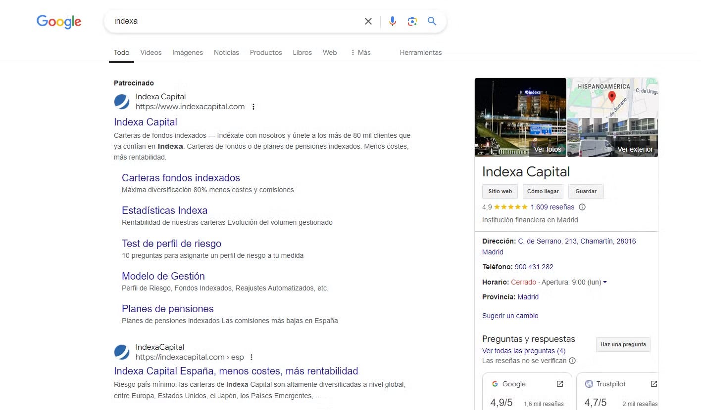 Inversión en outbound: es curioso como apenas invierten en PPC (lo que hacen únicamente es SEM con la palabra clave de Indexa, para la gente que busca la empresa por internet).