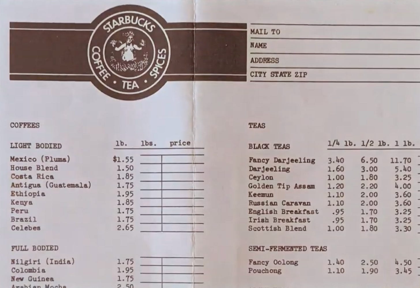 Starbucks se funda en Seattle (Washington, USA) en 1971. Desde el inicio es concebido como una tienda donde se vende café de calidad, pero no como bebida sino como producto empaquetado. Debido a la tendencia ya marcada desde la Segunda Guerra Mundial el café de calidad por aquella época no se consumía y, desde entonces, se tomaba café industrial de baja calidad con el único objetivo de recibir los efectos de la cafeína.
