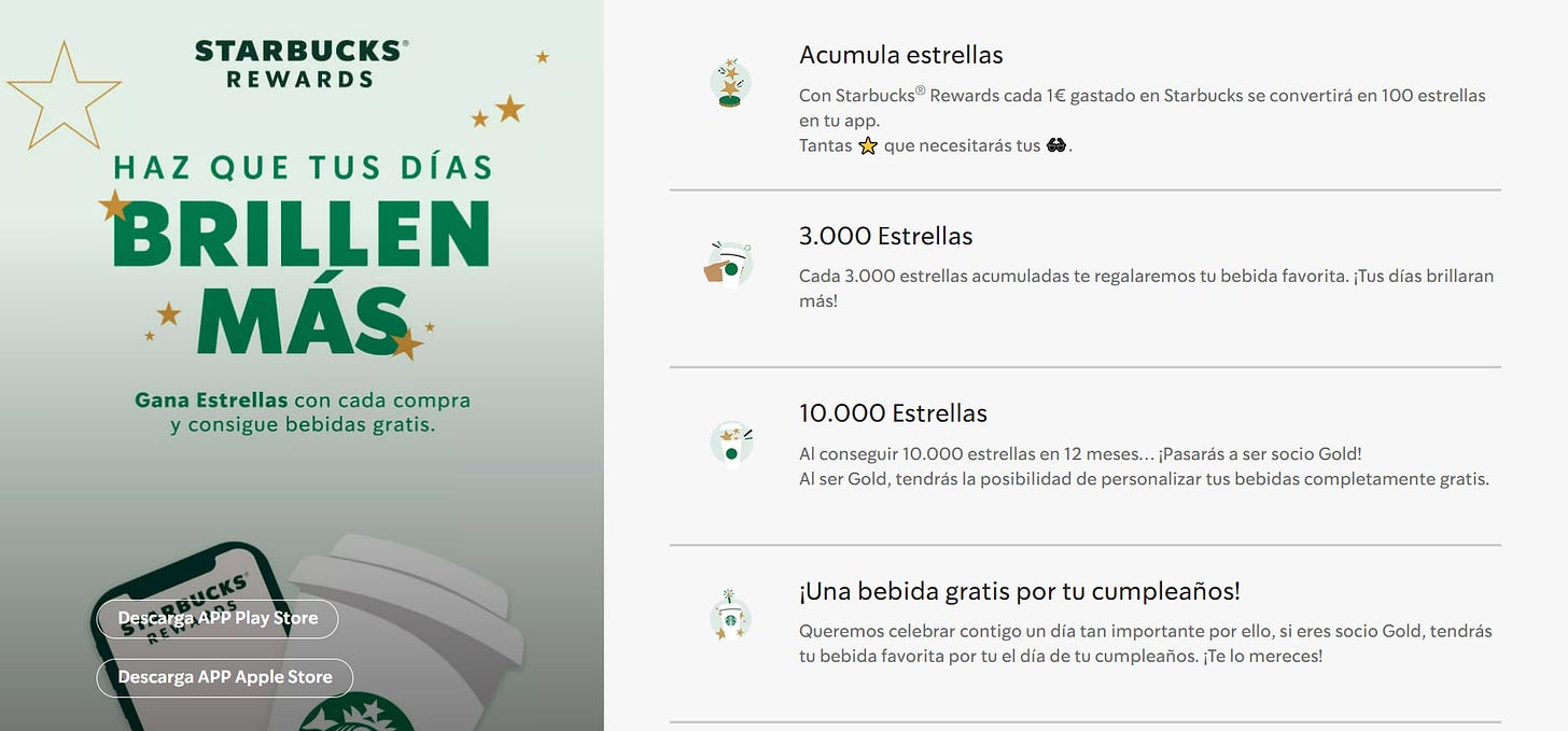 Programa de lealtad y tarjetas de regalo: Starbucks Rewards y las tarjetas de regalo suponen ingresos adicionales por adelantado que permiten fidelizar al cliente y fomentar la repetición de este.